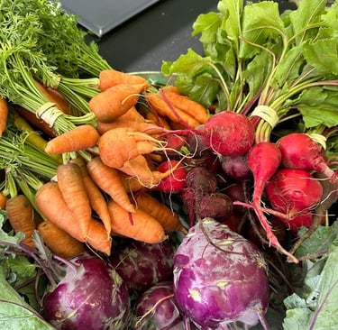Find our organic veggies at the farmer markets every week June-September